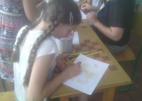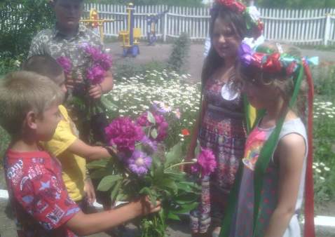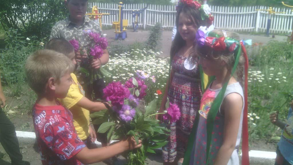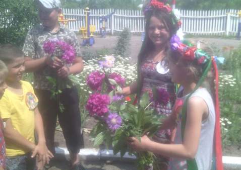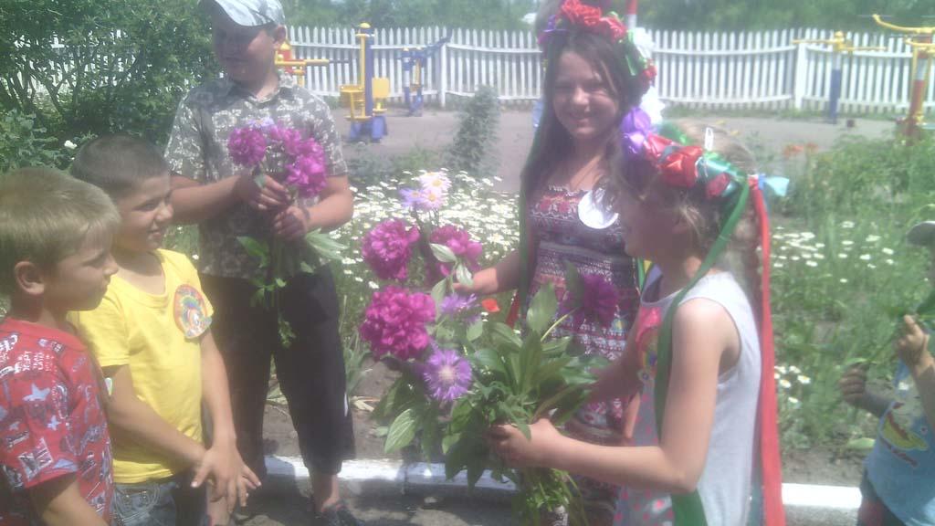 Сьогодні діти з задоволенням грали в гру — мандрівку «Ключ до старого лісу», брали участь у вікторині «Запитай у природи», у конкурсі «Природа і фантазія», малювали малюнки на асфальті «Краса моєї України», плели віночки з квітів, оформляли квіткові композиції.