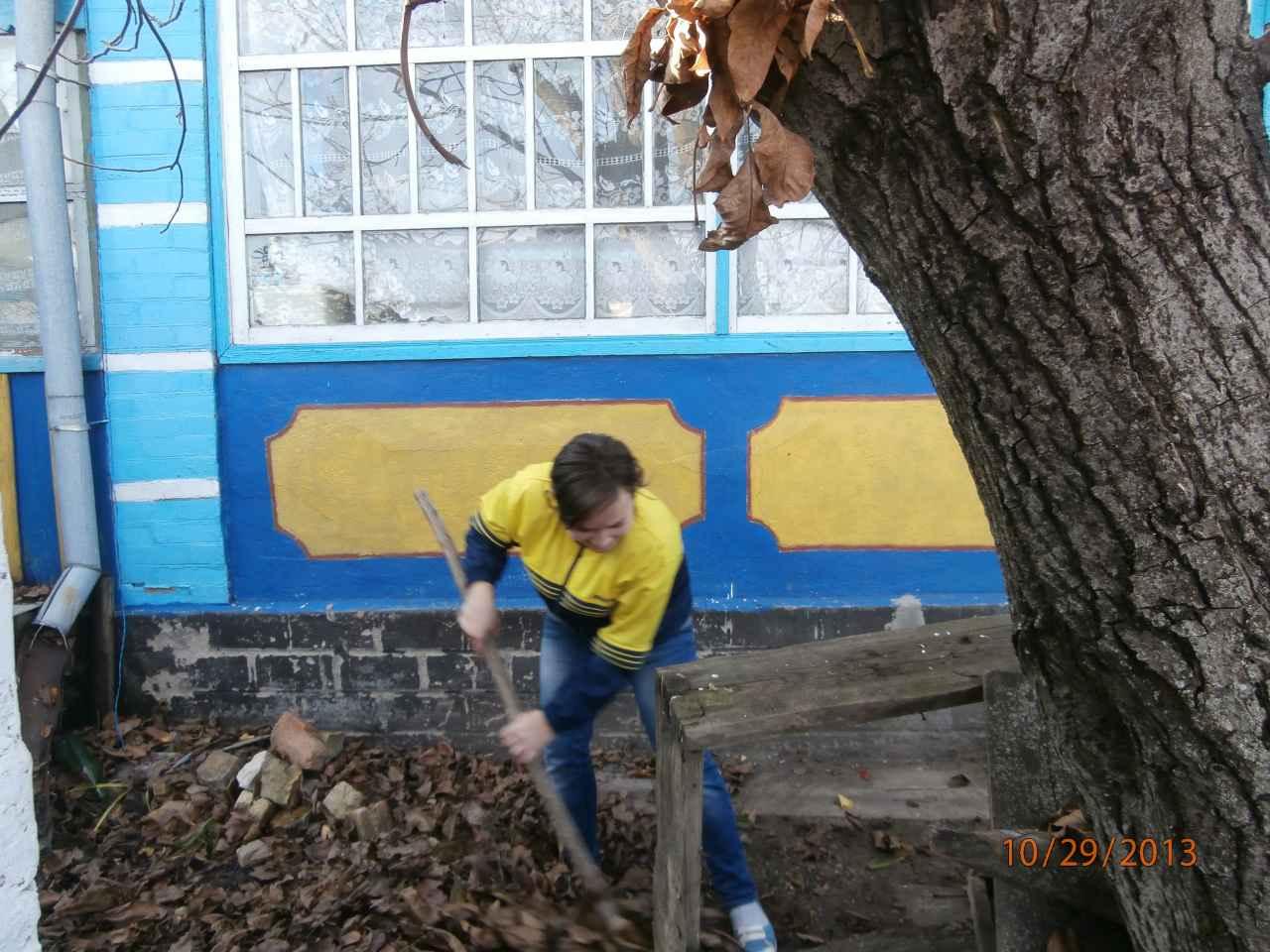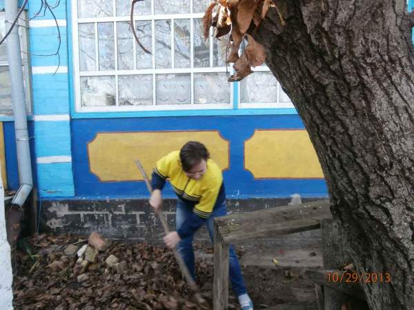 Учні 7 та 8 класів Порхун Вадим, Непомнющий Сергій, Бистревський Ілля, Тюкова Юлія, Войченко Максим разом з учителем Наталією Олександрівною Жабровською допомогли Івану Федоровичу Комасі прибрати подвір’я.