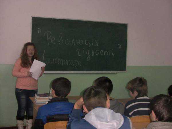 Героями, які не шкодуючи життя, полягли за неньку-Україну! Слава Україні! Героям Слава! І саме тому я підготувала і провела для своїх товаришів, менших школярів виховний захід про події революцій Гідності і Свободи.